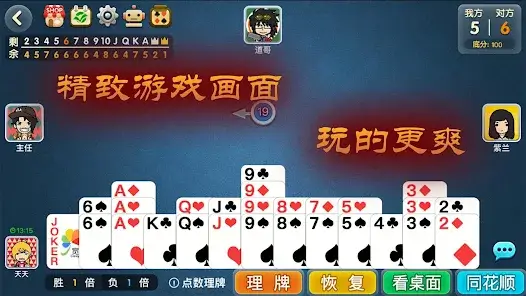 手机 / 平板 / 电脑三端互通 高清画质、丝滑操作 零延迟出牌!每一局都紧张刺激!